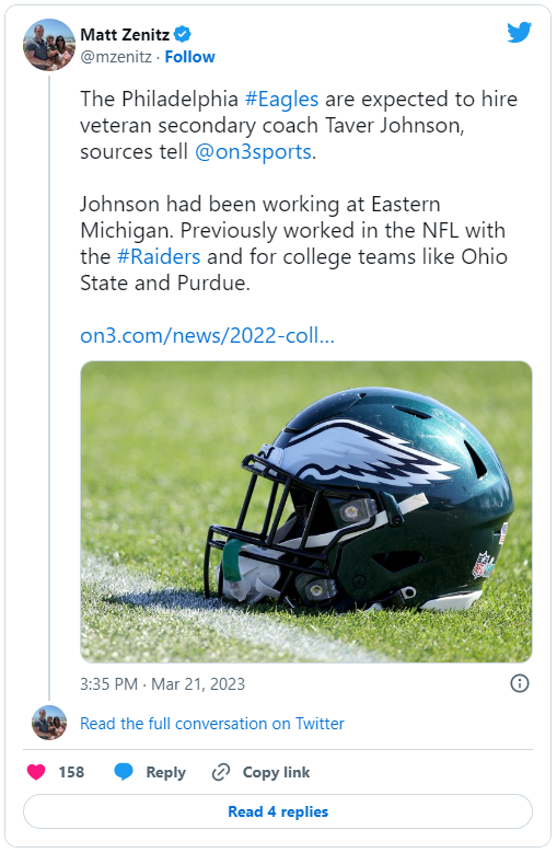Posted March 22, 20232 yr Eagles Add a LB Posted: March 21st, 2023 | Author: Tommy Lawlor Butkus. Singletary. Morrow. The names of legendary Bears linebackers just rolls off the tongue. Who will ever forget the fear that Dick Butkus put into opponents? Who will ever forget the piercing eyes of Mike Singletary as he stared at the offense like a maniacal warrior? Who will ever forget Nicholas Morrow piling up 11 tackles and a TFL against the Eagles in a game in December of 2022? Legends, each one of them. And now the legendary Nicholas Morrow has decided to don the midnight green of such linebacking legends as Jamar Chaney and Akeem Jordan. What a glorious time to be alive. The Eagles lost starting LBs TJ Edwards and Kyzir White in free agency. Nakobe Dean will replace one of them and that left an opening for another staring LB. Mr. Morrow has now taken the other spot. Joking aside, this is a solid move. The Eagles are high on Dean and want him on the field. Morrow is a cheap replacement for Edwards. When you have financial limitations, you have to find the right player at the right price. Bobby Wagner would have been a better addition, but also would have cost more. Morrow was the right price. Time will tell if he’s the right player. Morrow started all 17 games for the Bears last year and led them in tackles. That was his first season in Chicago. He spent his first five years with the Raiders, including the 2021 season which he missed with a foot injury. Morrow started 11 games in 2020 and finished third on the team in tackles. He lacks ideal size at 6-0, 225, but he’s a good athlete. In his two years as a starter, Morrow showed potential as a playmaker. 2020 – 78 tackles – 8 TFLs – 9 PD – 1 INT – 1 FF – 1 FR 2022 – 116 tackles – 11 TFLs – 2 PD – 1 INT Those teams were two of the worst defenses in the league. It will be interesting to see how Morrow responds to playing on a good unit. The Eagles might not finish second in Total Defense this year, but they have enough good pieces returning to be in the top half of the league. Last year Morrow spent part of the season playing alongside Roquan Smith. Interestingly, the Bears had Morrow wear the helmet with the green dot and act as the defensive play-caller. Uusually you wouldn’t take that away from a player like Smith and give it to a new guy. Obviously the coaches had some trust in him. "He’s cerebral. Really smart,” linebackers coach Dave Borgonzi said. "He’s played a couple different positions. He’s been in a few different systems. He’s got a really unique perspective. He’s played for six years with different coordinators, so he’s seen a lot of different schemes. Really smart. Understands football. And he’s challenging as a coach because he’ll present things that are a different way to think about it.” It is somewhat ironic that Morrow came to Philly after the Bears signed Edwards to replace him. Chicago coach Matt Eberflus is a big believer in LBs and wanted to spend money to upgrade. He signed Edwards and Tremaine Edmunds to take over the middle of the defense. The Eagles prefer to focus on the DL so they invested resources up front and Morrow was a good fit financially. It is also worth noting that Morrow’s best game last year came against the Eagles. He had 11 tackles and played well. That obviously made some kind of an impression. I am curious to see how the Eagles use Dean and Morrow. Dean played MLB in college, but focused on WLB last year. Morrow has mainly played OLB in the NFL. Last year he split time between WLB and MLB. With Smith, he was in the middle. After Smith was traded, Morrow moved to WLB. Morrow said he felt more comfortable at WLB, but can play both. It will be interesting to see what the Eagles do. Maybe they put Morrow in the middle because they want his speed there. We heard all last year about Edwards speed not being an issue, but maybe that is something the Eagles want in the middle. Or they could put Dean in there and let him run the defense. We’ll see. Edwards is a player I really struggled with. There were times when he was very impressive and looked like a LB you had to keep. There were other times when he would struggle and frustrate me. He is one of the few guys who felt both underrated and overrated at the same time. Watching Morrow in his place might make me appreciate Edwards more. Or it might make us go "Eh, not that much different.” Morrow is a band-aid move. The Eagles need a veteran at LB until they come up with a long term solution. They’ll check out draft prospects, but this isn’t a great year to need a LB. I’ve been watching prospects for the past few days. There are some good athletes who excel in space, but there aren’t nearly enough guys who look made for the inside. I’ll be writing about them in a separate post. ***** The Eagles are getting closer to filling out their coaching staff. Johnson has a really interesting background. He started out in D3 and worked his way to bigger schools and eventually the NFL. He’s been in the SEC, Big Ten and Notre Dame. He has seen it all. We know Nick Sirianni loves teachers. Johnson seems to fit that mold. You don’t climb the coaching ladder the way he did without being a good teacher. When you’re down at the D3 level, it isn’t about fame or money. You love football, or "ball” as Sirianni so annoyingly likes to say. You don’t recruit your way to wins. You coach. You teach. Johnson spent five years at D3 schools before becoming a graduate assistant at Notre Dame. He then went to Miami of Ohio for four years before he got a chance to coach in the NFL in 2004. He headed back to college football and didn’t get back to the league until 2019. All in all, Johnson has been with nine schools and two NFL teams. He was the Defensive Pass Game Coordinator and Safeties Coach for Eastern Michigan last season. Their mascot is the Eagles so he’s got an easy transition from that perspective. On th