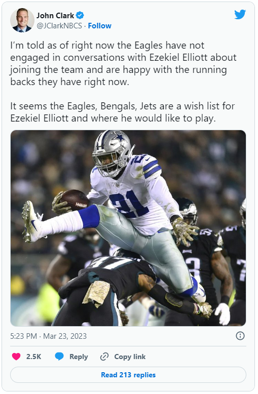 Posted March 26, 20232 yr Busy Day Posted: March 23rd, 2023 | Author: Tommy Lawlor The Eagles are in the process of bringing prospects to Philly for pre-draft visits. The team is allowed 30 of them, unless the players are local and then they are unlimited. Asim Richards is an OL who played at UNC, but he’s from Philly. He can visit and it won’t count. Kids who go to school at Temple or Villanova can visit and it won’t count. Aside from them, the Eagles have 30 visits to use they are picky about who they bring to town. Teams have admitted to bringing players to town that they don’t have interest in just to throw off the other teams drafting around them. That might have been the case with the Eagles bringing in RB Bijan Robinson. Or maybe they do have interest. It keeps us all guessing. Sometimes teams bring in players that they have questions about. The team is trying to figure out just how comfortable they are with a prospect. If you get the players away from events (Senior Bowl/Pro Day/Combine), they might let their guard down and give you insight as to whether you really want them. Most times teams are trying to figure out just how much they like a prospect. Do we like him? Do we love him? Is this a guy we have to find a way to get? DL Lukas Van Ness is in town for a visit and I’m guessing he falls into the last category. Around Christmas, Van Ness was perceived to be a Top 50 pick. Now that teams have studied his tape and seen his Combine workout, Van Ness has a chance to go very early. The Eagles would need to use pick 10 on him if they really want him. Van Ness is 6-5, 272. As I mentioned yesterday, he reminds me a bit of Zach Allen, the Cardinals DL who got big money to go to Denver in free agency. Both are athletic enough to play outside, but big and strong enough to play inside. You love that kind of versatility in DL, especially in today’s world of multiple fronts. Van Ness is only a redshirt sophomore so he had two years of eligibility left. He surprised a few people when he came out because he never even started a game at Iowa. Still, he did lead the team in TFLs and was tied for the sack lead this past season. When he was on the field, Van Ness made things happen. He isn’t just a gifted athlete. He is a disruptive player who has a ton of upside. Here are some comparisons. Lukas Van Ness 6-5, 272 4.58 – 40 time 1.62 – 10-yard split 17 reps 31 inch VJ 4.32 SS 7.02 3Cone Zach Allen 6-4, 280 5.00 1.65 24 reps 32 VJ 4.36 SS 7.34 3C JJ Watt 6-5, 290 4.81 1.71 34 reps 37 VJ 4.21 SS 6.88 3C Jason Jones 6-5, 273 4.80 1.62 18 reps 25.5 VJ 4.32 SS 7.29 3C I wanted a variety of guys so you could see different careers. Watt is obviously a freak. Those numbers are crazy and it showed in him having a HOF career. Allen has developed into a good pass rusher and versatile DL. Jones played in the league from 2008-2016. He played DE and DT, but did most of his damage inside. He finished his career with 31.5 sacks, 44 TFLs and 74 QB hits. Van Ness is a really intriguing prospect. The question is about value. Is he worth pick 10? He might be a guy you’d love to trade back and get in the mid-teens. Either way, he is a player the Eagles should be considering. Productive, athletic pass rushers are the kind of players you want in the first round. ***** Neal is a safety. He moved to LB for Dallas in 2021 and there were mixed results so he went back to playing safety last year. Neal is a punishing hitter. He absolutely blows guys up. If you loved watching Wes Hopkins and Brian Dawkins, you’ll love Neal’s hitting. Vicious. Obviously Neal isn’t close to Hopkins or Dawk overall. They were star players. He’s been to one Pro Bowl (2017). Neal would be a good veteran addition to help mentor Reed Blankenship and whoever gets drafted/signed. Neal started 8 games for Tampa last year and played pretty well for them. He isn’t a long term answer, but could be an effective one-year solution for the Eagles. ***** Now for the weird "story” of the day. That tweet by Schefter was deceiving. It made everyone think those teams were talking to him. Apparently that’s not the case. Schefter does favors for agents and that tweet was certainly one of them. His agent is trying to create a market for Zeke’s services, especially with teams that Zeke wants to go to. There haven’t been any reports about teams talking to him prior to today. This isn’t an ideal time to be a RB, especially a veteran RB. From an Eagles perspective, Zeke would make some sense, but only at the right price. He’s no longer the guy you build the offense around. He is a good short yardage and goal line runner. Those are critical situations and having someone like Zeke in them would be good. He is a good pass blocker and effective receiver. He’s durable. Zeke has started at least 14 games for five straight years. He’s never had less than 250 touches, which is good and bad. That’s good because it shows how dependable he is. At the same time, you wonder if he would accept more of a role player situation. And paycheck. Probably nothing comes of this, but made for some interesting speculation. ***** Happy Birthday to the Polish Rifle, still one of the greatest nicknames in NFL history. http://igglesblitz.com/2023/03/busy-day-6/