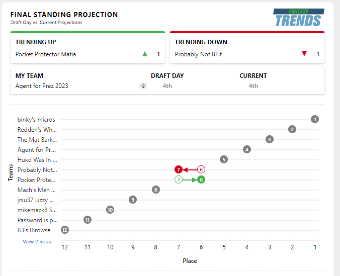 September 8, 20214 yr 3 minutes ago, paco said: Agent For Prez 20235 Aaron Jones GB, RB 20 Joe Mixon Cin, RB 29 A.J. Brown Ten, WR 44 Tyler Lockett Sea, WR 53 Mark Andrews Bal, TE 68 Justin Herbert LAC, QB 77 Tyler Boyd Cin, WR 92 Melvin Gordon III Den, RB 101 Jaylen Waddle Mia, WR 116 Tyler Higbee LAR, TE 125 Mecole Hardman KC, WR 140 J.D. McKissic Wsh, RB 149 Giovani Bernard TB, RB 164 Patriots D/ST NE, D/ST 173 Ryan Succop TB, K 188 Mac Jones NE, QB I hate to admit it, but that's a solid first 3 rounds. Feel free to tell your cats I said that.