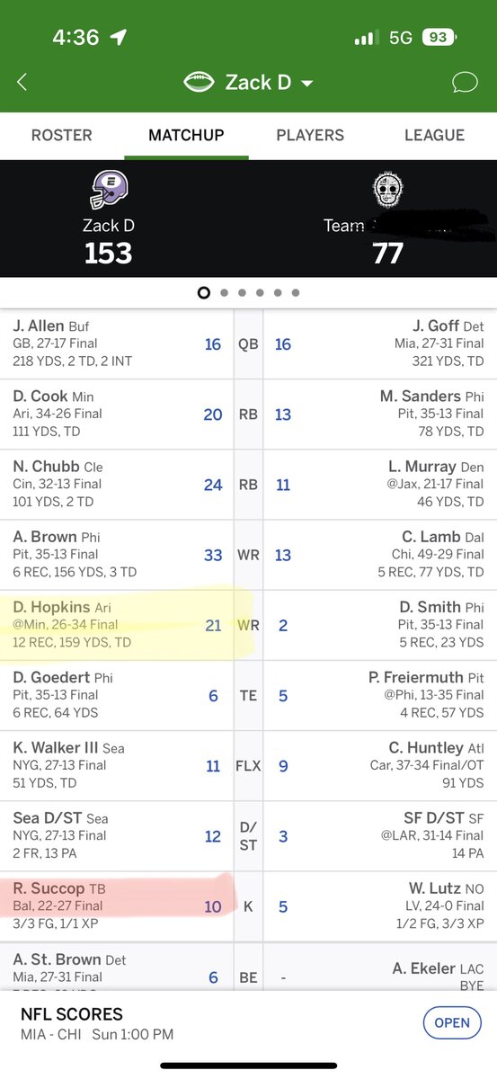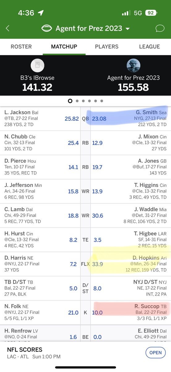 November 1, 20223 yr In other news, I was the top-scoring team in 3 (of 4) leagues this week. DHop is only player on all 3 teams and no greater than 2 common players on any given team (and the non DHop ones are a kicker and Geno Smith). Spreadsheeets!