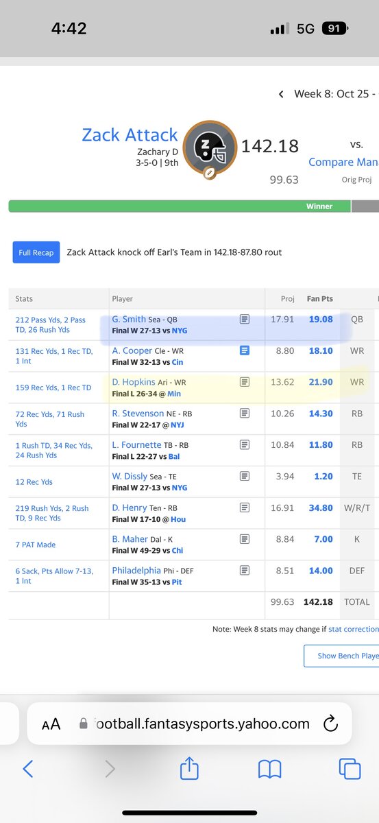 November 1, 20223 yr Ohhh yeah! I've had 3 huge weeks in a row. And my RB's stunk it up The Browns have **** slapped the Bengals