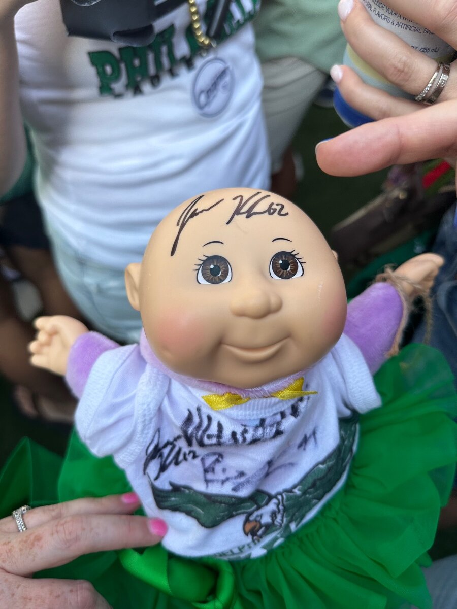 July 8, 20241 yr I’m in! Also I never picked out a charity for my win. We will send a donation to the Eagles Autism Foundation. We will upload a pic of the donation once we make it. My sister and I went to Jason Kelce’s Ocean Drive event in Sea Isle which benefits the foundation and he along with Brandon Graham, Landon Dickerson and Beau Allen signed my daughter’s baby so in thanks for that I want it to go there. Even though we donated that day too lol. The event raised $865k so far! Pics for those that didn’t see in the other thread.