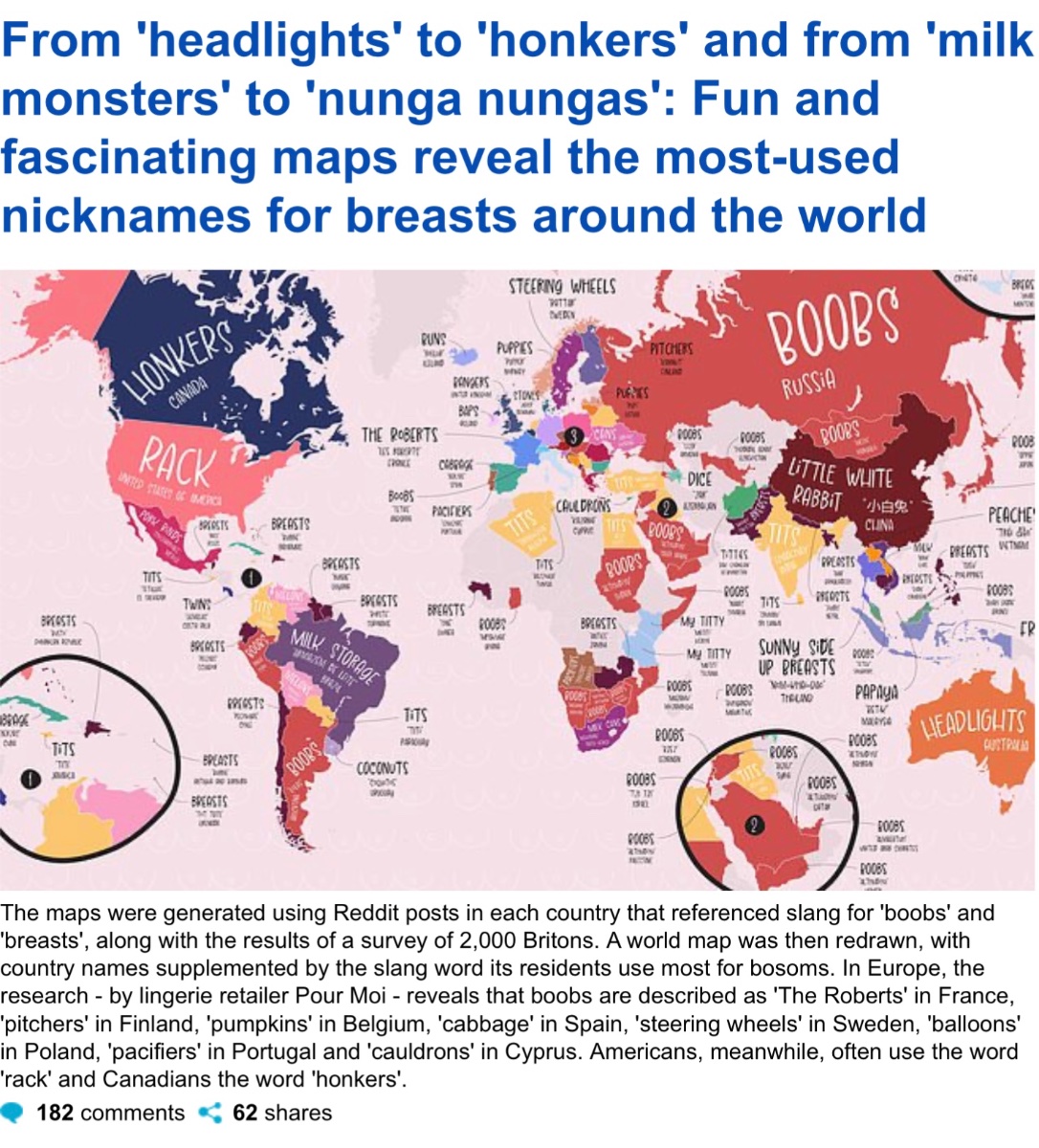 April 21, 20232 yr https://www.dailymail.co.uk/travel/article-11999027/Fascinating-maps-reveal-used-nicknames-breasts-world.html