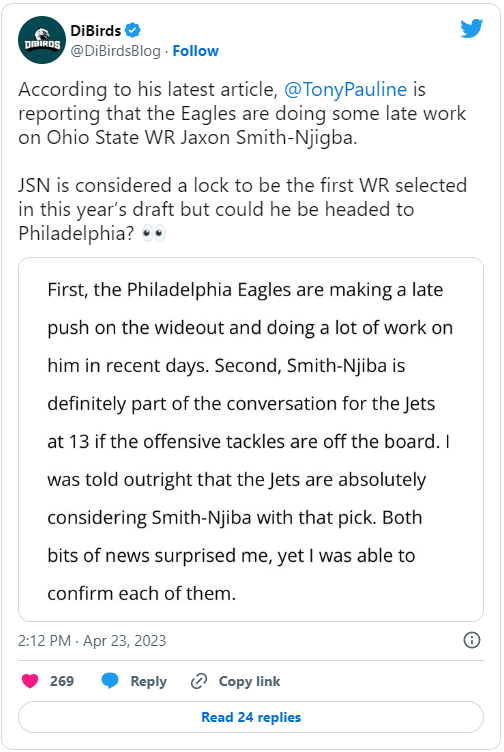 Posted April 25, 20232 yr Lying Season Posted: April 24th, 2023 | Author: Tommy Lawlor With the draft just days away, there are all kinds of interesting reports floating around. One or two might be true, but most are items being fed to the media by people with agendas. First, let me say that Tony is a friend. We get together every year in Mobile to talk football and Led Zeppelin. You won’t meet a bigger Zep fan than Tony. When it comes to football, he’s connected to scouts, but also a lot of agents. This feels like a nugget from JSN’s agent to try to get his client to go as high as possible. The Eagles are at 10. They could use a WR. They also are a team that people pay attention to. Link the Eagles to your guy and it might help convince another team to take JSN early. I think Carter going to Seattle at 5 is being pushed either by Seattle or Carter’s agent. We’ll start with the Seattle angle first. They already have a pair of first round picks, but still might want to move down to add another pick or two. There might not be a player they love at 5. They could move back and still possibly get a QB for the future. At the least, they’d like to have the option to move back. Carter’s agent is Drew Rosenhaus. We know he is a master manipulator. Rosenhaus wants Carter to go as high as possible. He’s trying to create a favorable situation for his client. Teams 6-10 could wait for Carter to fall to them, but if they really want him, go up to 5 and get him. Rosenhaus once called his client, Willis McGahee, during the draft. McGahee had a horrible knee injury and there was a question about how far he’d fall. Rosenhaus knew Buffalo was interested in McGahee. Right before their pick, Rosenhaus called his client. The Bills front office saw McGahee on TV talking on the phone. They assumed he was talking to another team. Buffalo took him right there. Rosenhaus’s ploy worked perfectly. I don’t know anything for sure, but I do think Carter will make it to 10. I just don’t see the teams ahead of the Eagles being willing to take a chance on him. Charlie is a grinder. I would tend to believe this stuff since he’s not going on TV and saying this. He also doesn’t have a gazillion followers. That still doesn’t mean the stuff is true, but I give it more validation than other reports/rumors. I can see Howie being willing to trade up for Carter. Howie loves premium talent and Carter certainly is that. I’ve talked for a while now about Van Ness and how the Eagles could have interest in him. I know some of you hate the idea of taking him, but Van Ness is big, athletic and a gifted pass rusher. He would make a lot of sense. You might have to learn to love him. There are still a couple of days to go so be prepared for more rumors that involve or affect the Eagles. This is an odd nugget. I’m not a huge fan of Johnson at 10 for the Eagles. If the Cards took him at 3…yikes. That would be terrible value. We keep hearing Arizona wants to move back if they can pull that off, Johnson would make more sense. Jonathan Gannon saw the value of OL in his time in Philly. Kyler Murray needs a good OL. I’d love for Johnson to go before 10. That would push another player down to the Eagles. ***** I like this. Scott is a terrific player. I’ve got him rated in the 3rd round. Other people have him going late and I just don’t get it. He’s big, athletic, skilled and experienced. I’m not sure what’s not to like. I’d love to see the Eagles take Scott. ***** Jackson showed real promise back in 2021. He’s big, athletic and showed good potential as a receiver. Jackson is healthy once again and will need to really battle to have a shot to win a roster spot. http://igglesblitz.com/2023/04/lying-season/