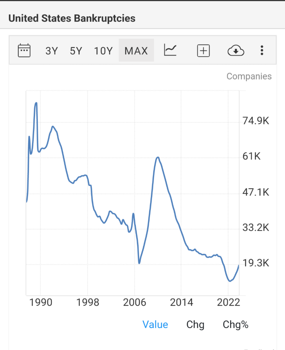 April 30, 20241 yr 2 hours ago, we_gotta_believe said: "trending" Compare the pre-pandemic bankruptcy numbers from 2017, 2018, and 2019, then do the same for the years Biden has been in offce. See if you can figure out which ones are higher. Take your time, I know big numbers are scary for idiots born and raised in the dumbest state in the country. Yes "trending" They were going down annually, now they're going up again. The inflection point is Bidens dumb arse.