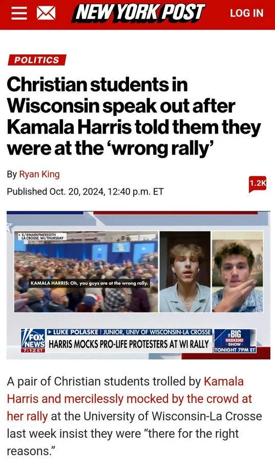 October 21, 20241 yr 1 minute ago, Tweek said: Bunch of betas, show up to heckle, get heckled and now crying about it like it had anything to do with your religion (of course NYP would take this stance) Those kids did the world a great service. The one viral story that I've seen more than Trump spreading McDonald's cheer to the public is that Kamblah hates Christians. Definitely a bold strategy with less than a month until an election.