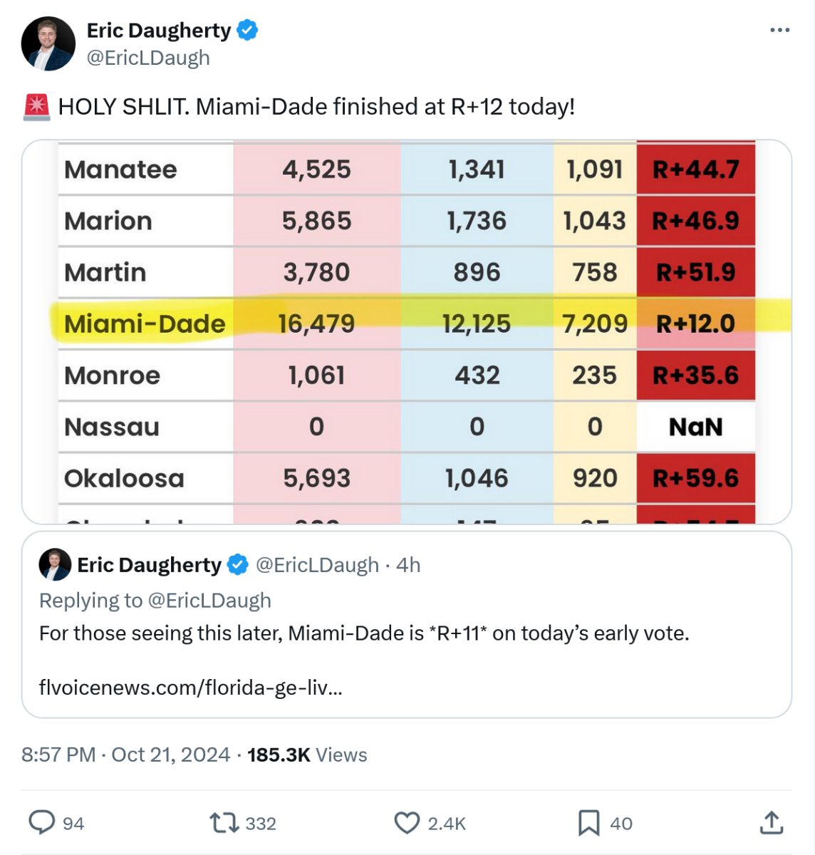 October 22, 20241 yr 7 hours ago, Diehardfan said: There will be ballot harvesting. Trump has to beat the cheat. We'll see. Even your 538 polls are better then 2020 so it's possible. Dude you're cracked. Based on past elections if anybody is harvesting ballots it's Republicans. Over and over Republicans are guilty of the actions they accuse Democrats of. You are choosing to ignore it. It's your prerogative to do so, but it's a choice you're making.