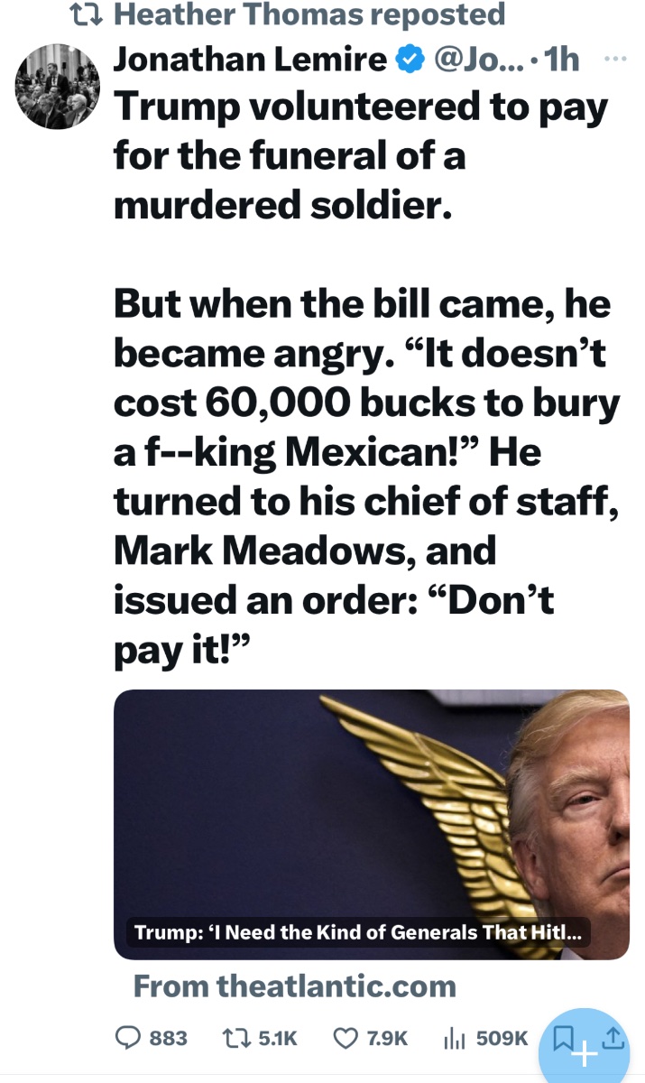 October 22, 20241 yr 7 minutes ago, mr_hunt said: More and more keeps coming out about how this POS thinks about the military. He is an effing moron. He actually said he wants "loyal” generals like Hitler had. When told that some of his generals plotted to kill him, he didn’t believe it. He has no clue about history.