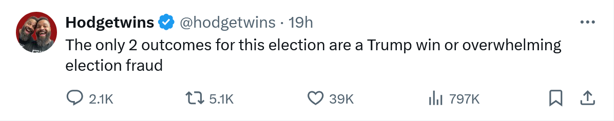 October 22, 20241 yr 5 minutes ago, JohnSnowsHair said: You really think fraud only happens to Dems benefit? You don't think there's fraud in all these large red tracks of land across the country where the spotlight isn't so bright on the ballot boxes and voting machines? Blue areas are the most heavily scrutinized during an election because they're population centers with a names attached. They're the least likely area for fraud to go undetected. Some remote polling station in WV or rural PA? Oh that's much more likely to see undetected fraud. Not really. I'm good with voter ID and same day voting nationality to make sure.