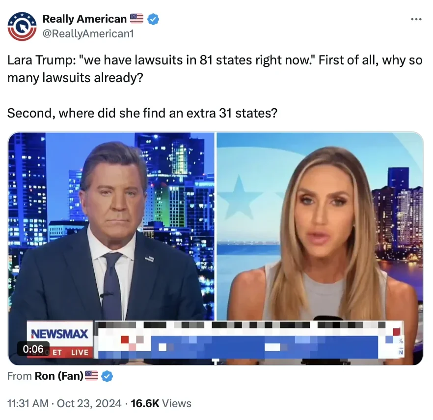 October 23, 20241 yr 2 minutes ago, The_Omega said: Both sides claiming the momentum, the upper hand, the lead, polls seem to be close, who to believe? Well, one side just made an abrupt change from Joy to extreme, desperate fear. That doesn't happen when you have the momentum and the lead. Now feel free to continue lying to yourself.