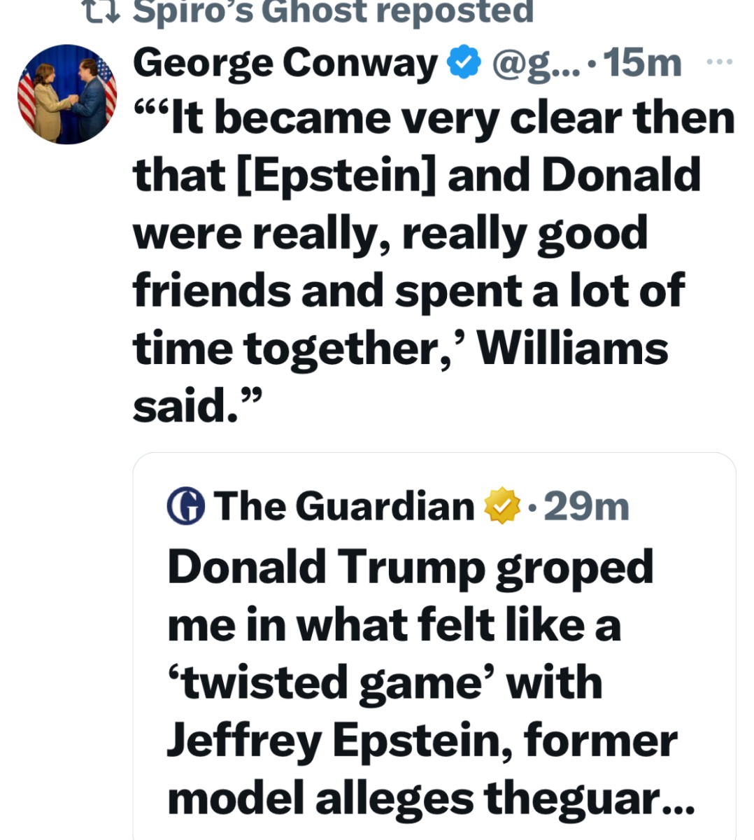 October 23, 20241 yr 1 hour ago, Diehardfan said: I love it how you’ve gotta quickly deflect when the Epstein stuff comes up. There’s no defense. Trump’s a pedo.