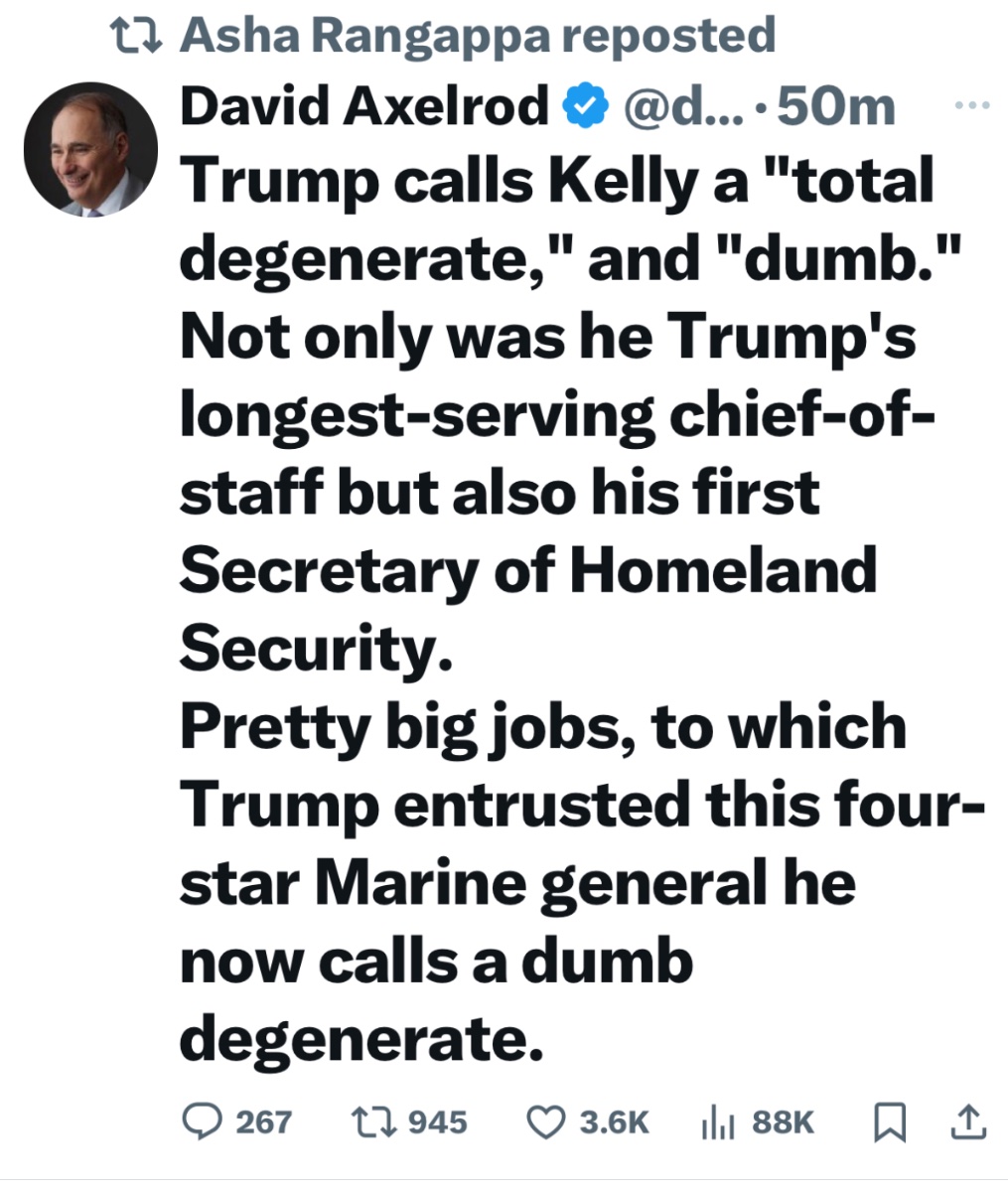 October 24, 20241 yr I think Kelly is just dropping Kamala a resume or he fears that concentration camp rumor....