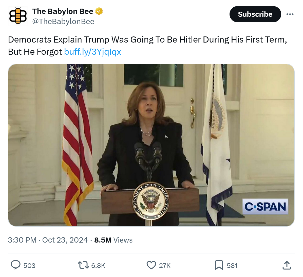 October 24, 20241 yr That last one is the worst answer I've ever seen from a presidential candidate in a debate or town hall. Most people do not want a president who is indecisive and has to Google it.