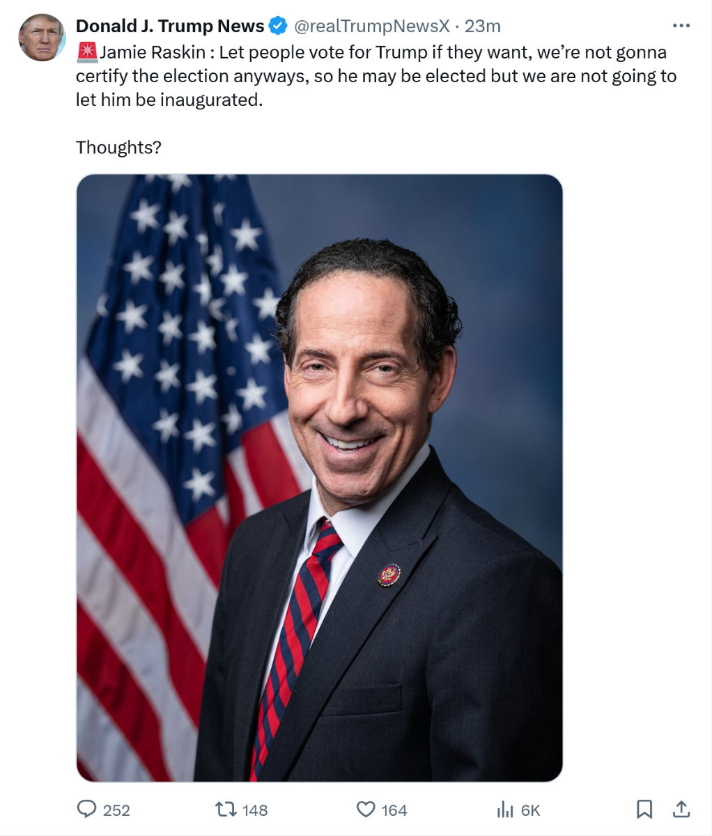 October 31, 20241 yr 32 minutes ago, Procus said: The hypocrisy of these weirdos Yeah except Raskin never said that. You have to make ish up to rationalize your worldview.