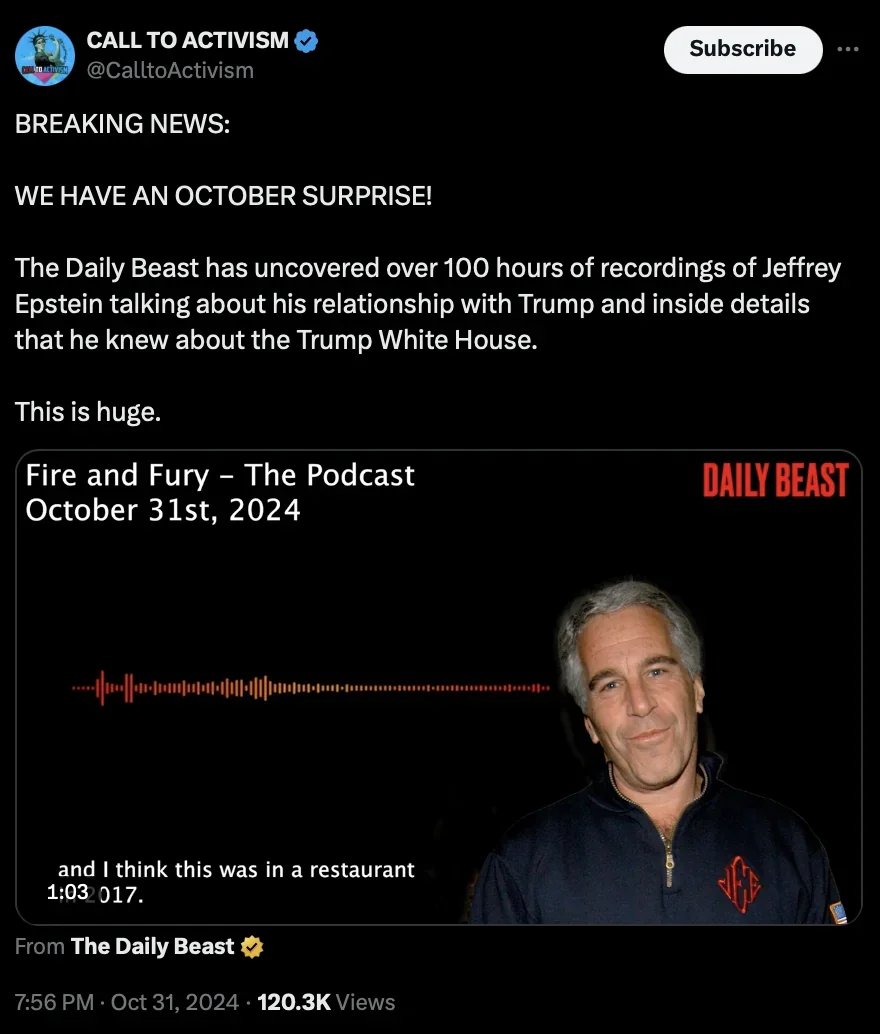 November 1, 20241 yr 8 minutes ago, Diehardfan said: Deep fake. I wouldn't jump to that conclusion. Epstein had engaged with Wolff to write his biography. It would not be surprising for him to have hours of content. Obviously the rub here is timing. Wolff is a scummy journalist.