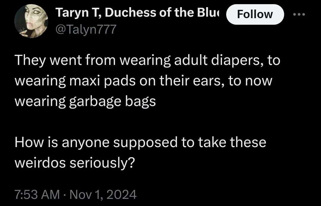 November 1, 20241 yr 4 minutes ago, Mike31mt said: This is all you TDSers have--insults. Your candidate sucks, her ideas suck, she's incompetent and fake, but hey Trump hurt your feelings one time Biden and Harris literally tripled child sex trafficking, but yeah let's talk about Epstein lol. Trump favors democracy with respect to abortion, but Dems demand lawfare and anti-democracy. Trump will cause WW3 yet here we are with wars all over the globe and no American leadership to speak of. Example after example but you are all empty vessels, brains hollowed out by media propaganda Yep. The TDS folk are out in force and triggering on the same cycle again today. Don't expect anything rational anytime soon from them.