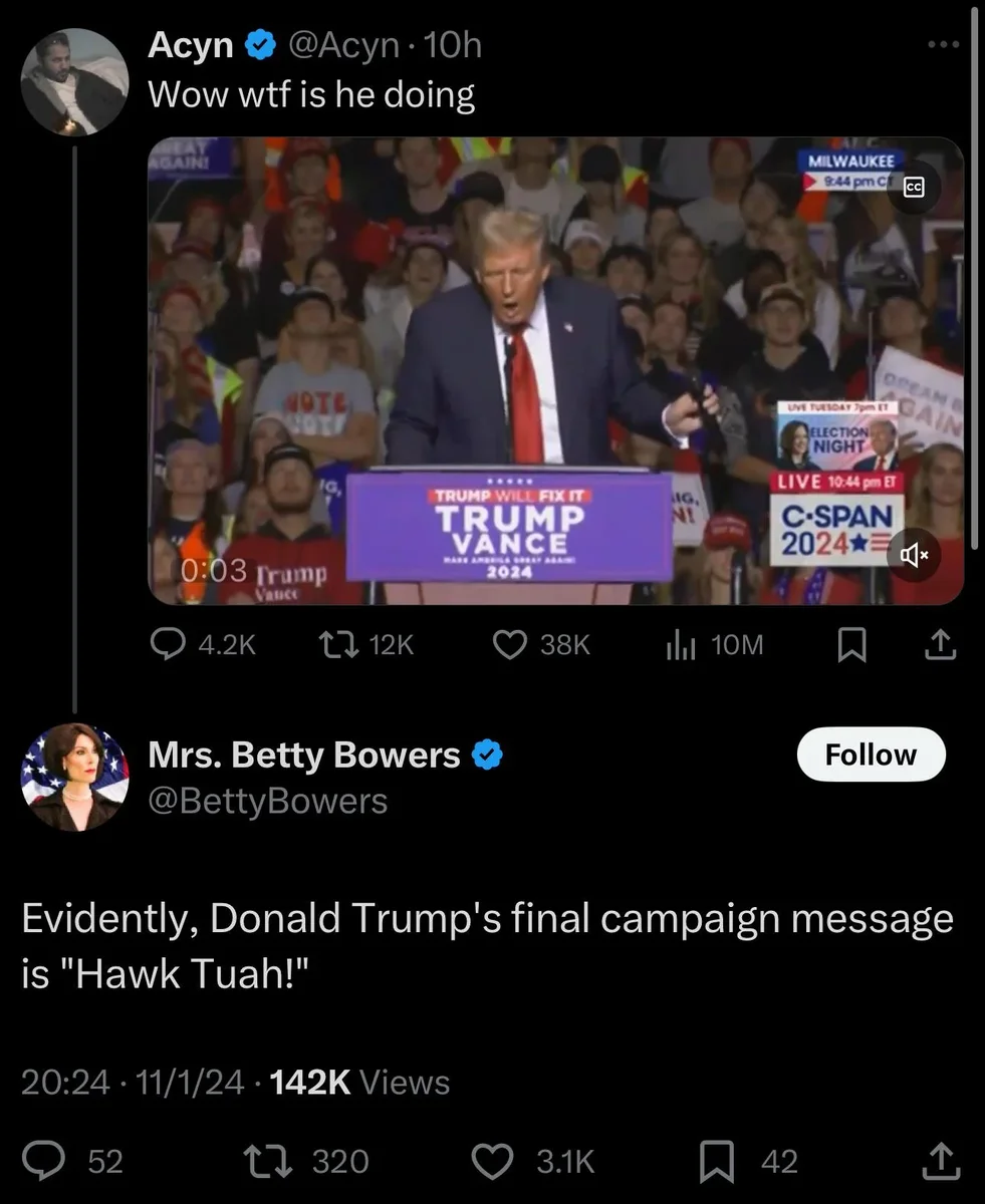 November 2, 20241 yr 19 minutes ago, we_gotta_believe said: Can any of the Trump whisperers translate this one into plain English for me? You can translate this one