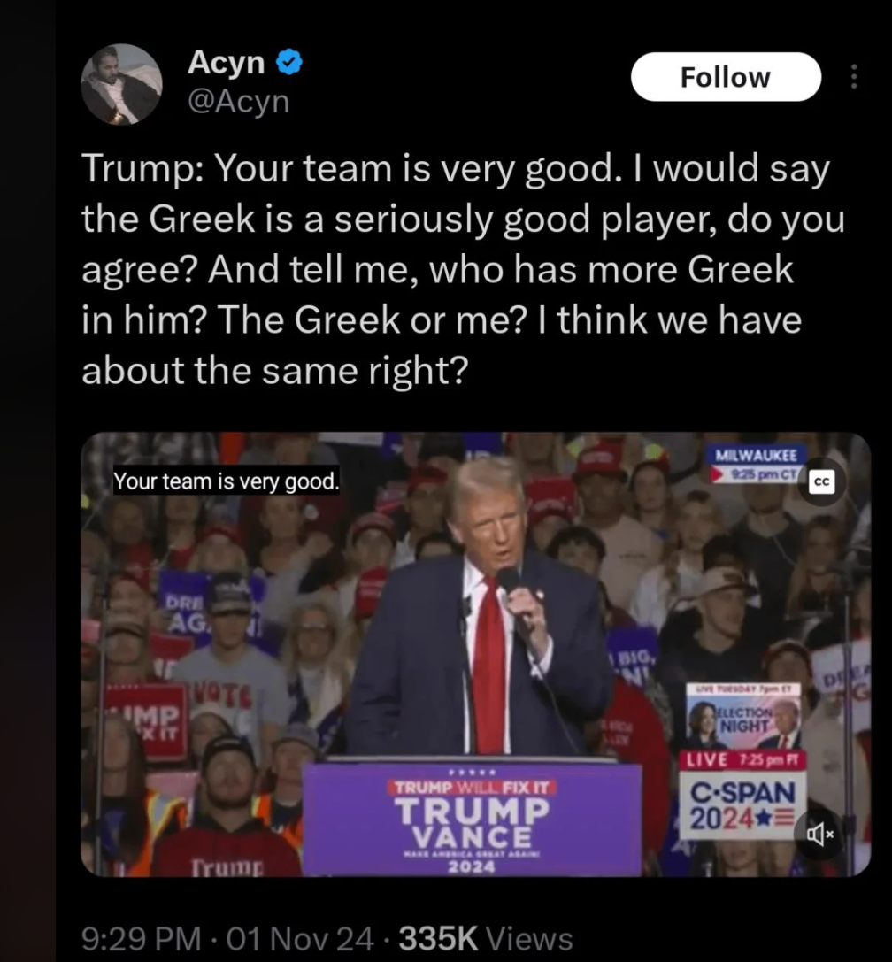 November 2, 20241 yr 5 minutes ago, Diehardfan said: Because of all the stuff he has said you think that will be a problem? Hahhahhahaha He basically said he's too black to be Greek. I know you support that kind of language but most normies, and especially minorities, don't see it as a good thing to say. Again, I know you're good with wacist theater, but when you're making your closing arguments in a general election it's the kind of thing that candidates actively seek to avoid.
