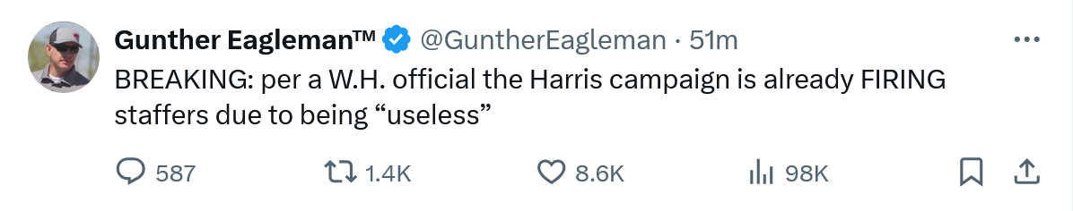 November 5, 20241 yr 37 minutes ago, NOTW said: Propaganda is what @Arthur Jackson does when he walks by the women's changing rooms at Macy's. don't forget the bottom of the escalator