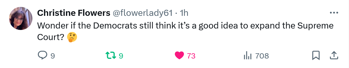 November 6, 20241 yr Lesson to all Dems: yesterday is why you’d be a fool to pack SCOTUS or dismantle the filibuster.