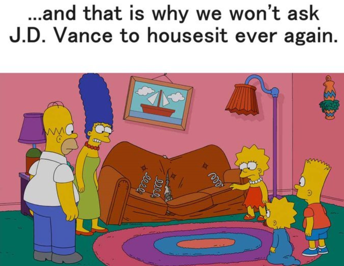 July 25, 20241 yr 4 minutes ago, VanHammersly said: This article's hilarious 37 minutes ago, DEagle7 said: You can't prove that Vance hasn't Fed couches though... Damn I could write for AP...