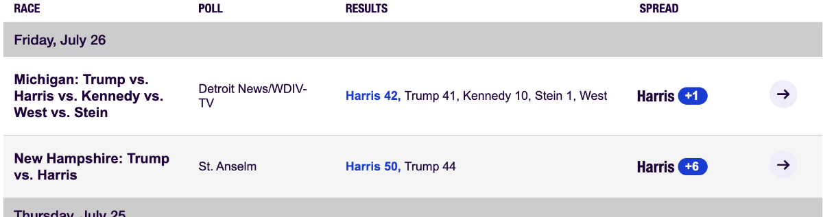 July 26, 20241 yr Why are the Trumpbots so salty this morning? Must be the latest polls from battleground states