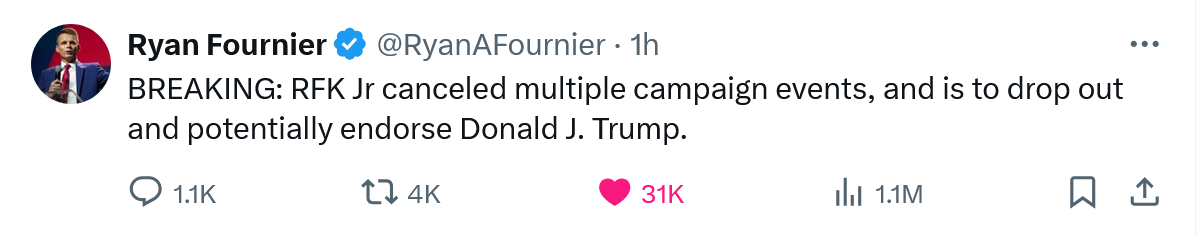 July 26, 20241 yr 6 minutes ago, we_gotta_believe said: They represent the fringes of both ends of the spectrum. Horse shoe theory. Anti-vaxxers and limited government types. I really thought the Trump campaign locked up the anti-vax/limited government vote. RFK Jr. is getting no attention from the Far Left. It is like he doesn't even exist. The only time I see him mentioned as a serious candidate is from the Right. They want him to be a Dem spoiler but he is not.