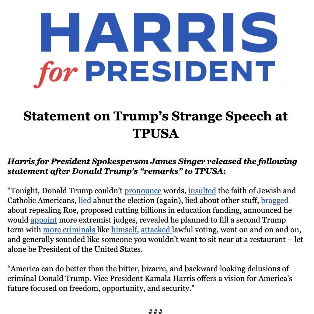 July 27, 20241 yr 30 minutes ago, we_gotta_believe said: Yeah totally, remember that time Harris said she was gonna be a dictator on day one, terminate the Constitution, and that people won't have to vote anymore in four years? The nerve of that woman! Just because he's worse, which he is, doesn't make her good, just less bad. That's my point in all of this. Once again, I don't like the choice.