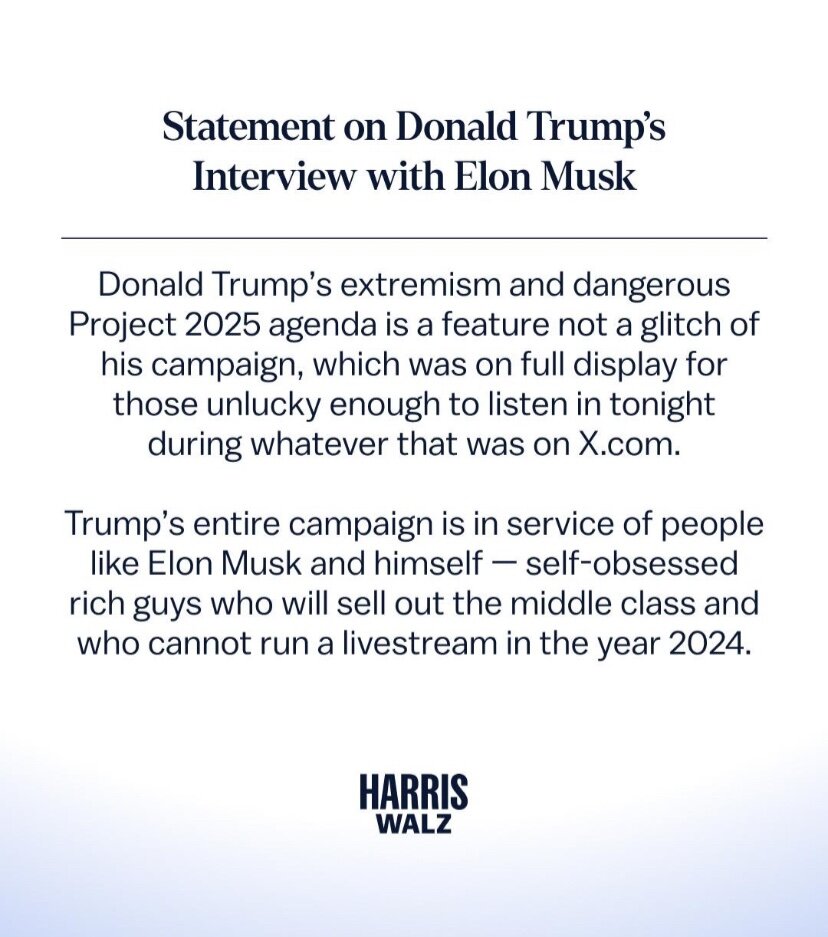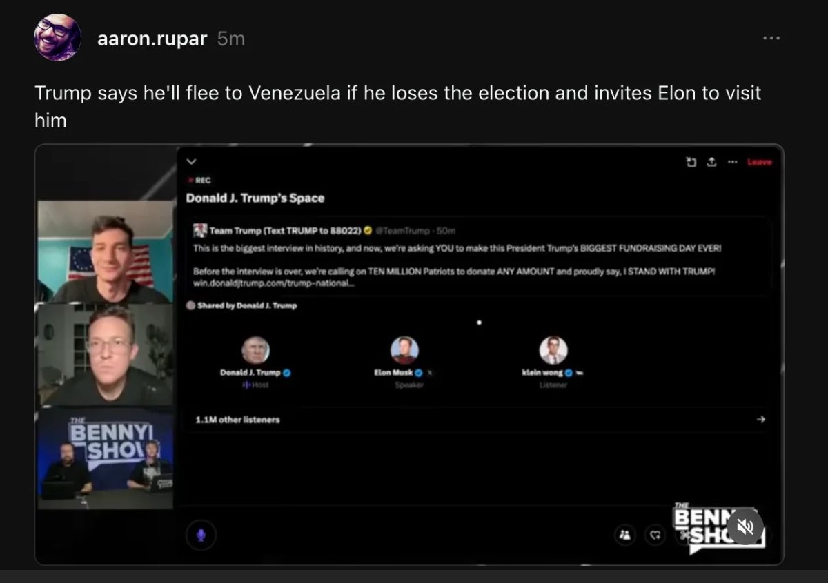 August 13, 20241 yr Wait wait wait wait....is this your guys counter to the whole crowd size thing?! That's why you're trying to pump up the views on an audio interview on social media?