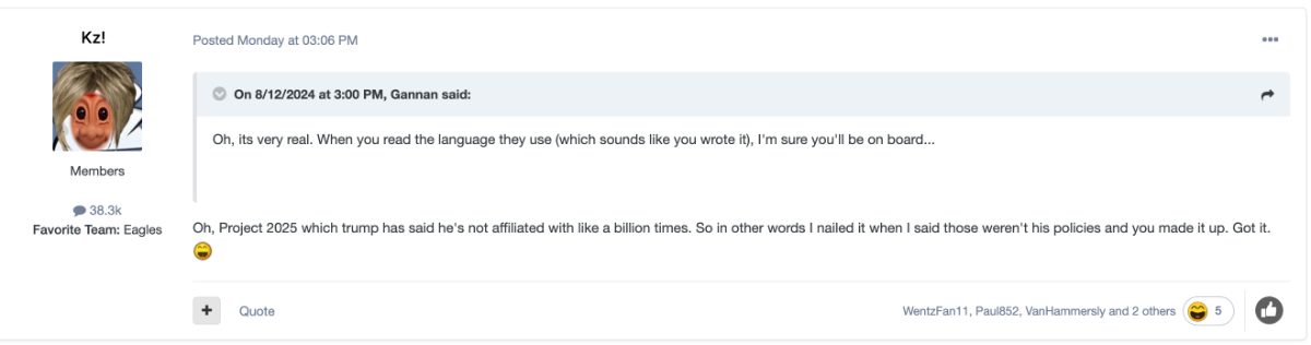 August 15, 20241 yr Just now, DrPhilly said: Like I said, idiots like KZ don't count Except they sort of do count. The lies the right wingers constantly tell seep into the media hive mind. Even mainstream outlets add addendums to their Project 2025 reporting, like "Trump has disavowed..." Any information that punches holes in the most obvious lie ever weakens their argument and forces outlets to scale back on their constant both sides bullsheet.