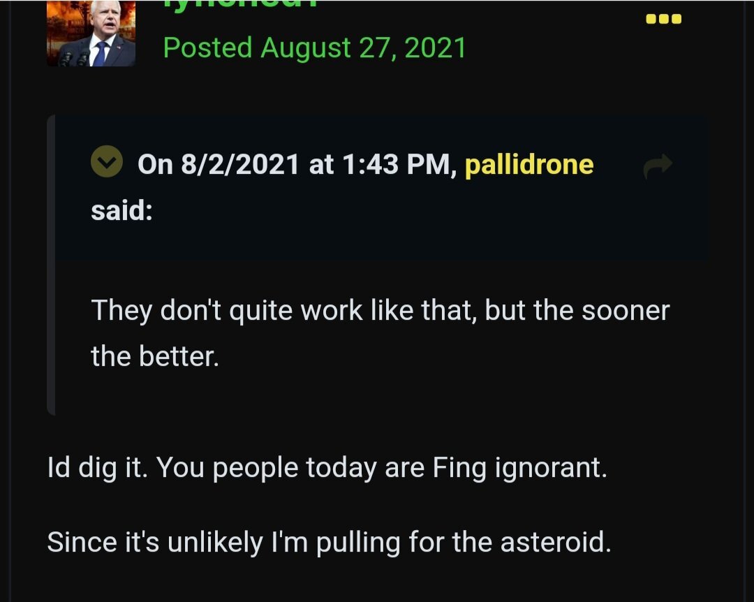 August 20, 20241 yr 16 minutes ago, lynched1 said: About time...... You made a funny 🤣🤣🤣 I may just spam a dozen pages of examples so everyone is in on your joke. look at sloth, so triggered and laboring under the delusion that his approval is needed. i love this place.