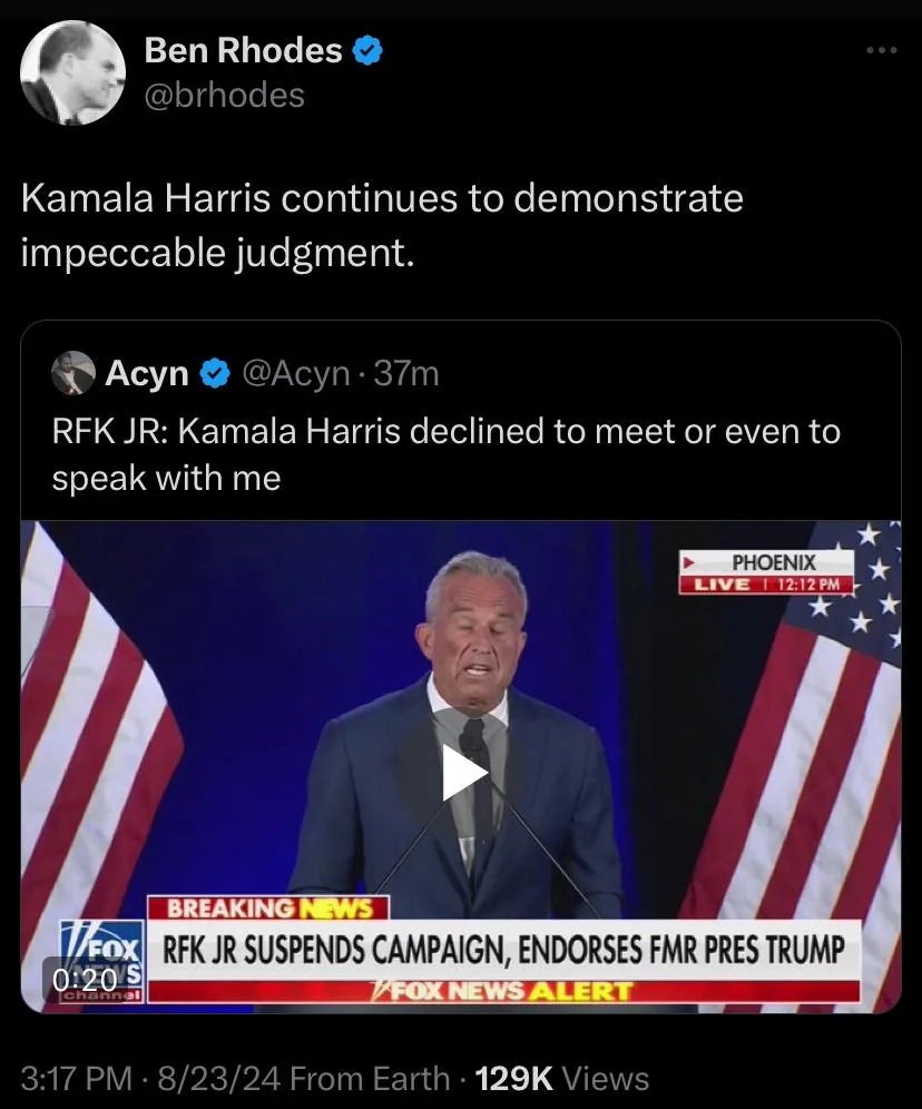August 23, 20241 yr He's campaigning for Trump now, right? Because I'll be damned if that isn't a Harris endorsement....