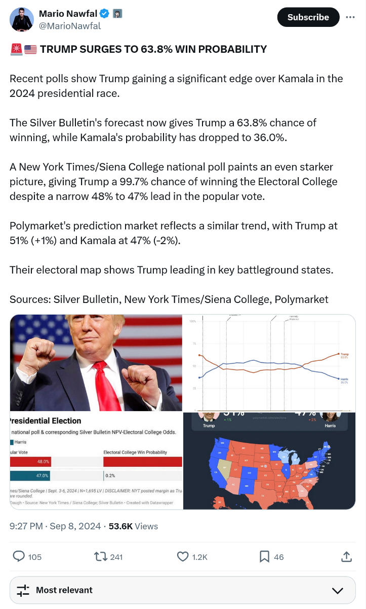 September 9, 20241 yr Kill the messenger Nate Silver, the liberal statistician who runs the popular polling and data website FiveThirtyEight, is drawing anger from leftists after his latest election models indicated that Trump is the favorite to win November’s presidential election.