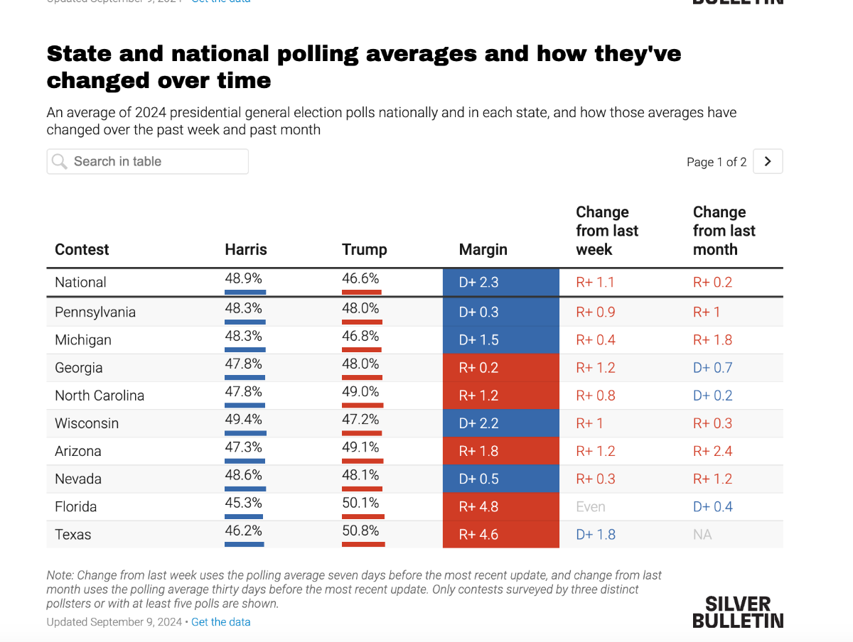 September 10, 20241 yr 3 hours ago, Gannan said: From Nate Silver's own website. Updated today... I saw that yesterday and didn't post it because I didn't see the dame on his site. The numbers have come down from what they were, so is there another olace that projects trends or is it just BS?