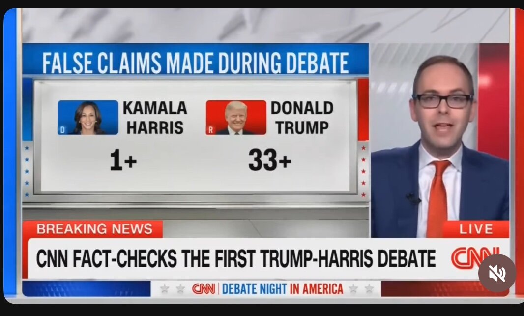 September 11, 20241 yr 22 minutes ago, Captain F said: So I guess fact checking during a debate was in fact NOT really a thing before last night and ABC themselves put it into place after the debate started and after being non committal to it beforehand. Moderators have a job. Moderate. Not participate. Period. Participation has led to issues in the past which is why it stopped. From CNN.... https://www.cnn.com/2024/09/11/media/abc-moderators-debate-fact-check-trump-harris-false-claims/index.html CNN also said that Trump made 33 false claims, and Harris made 1