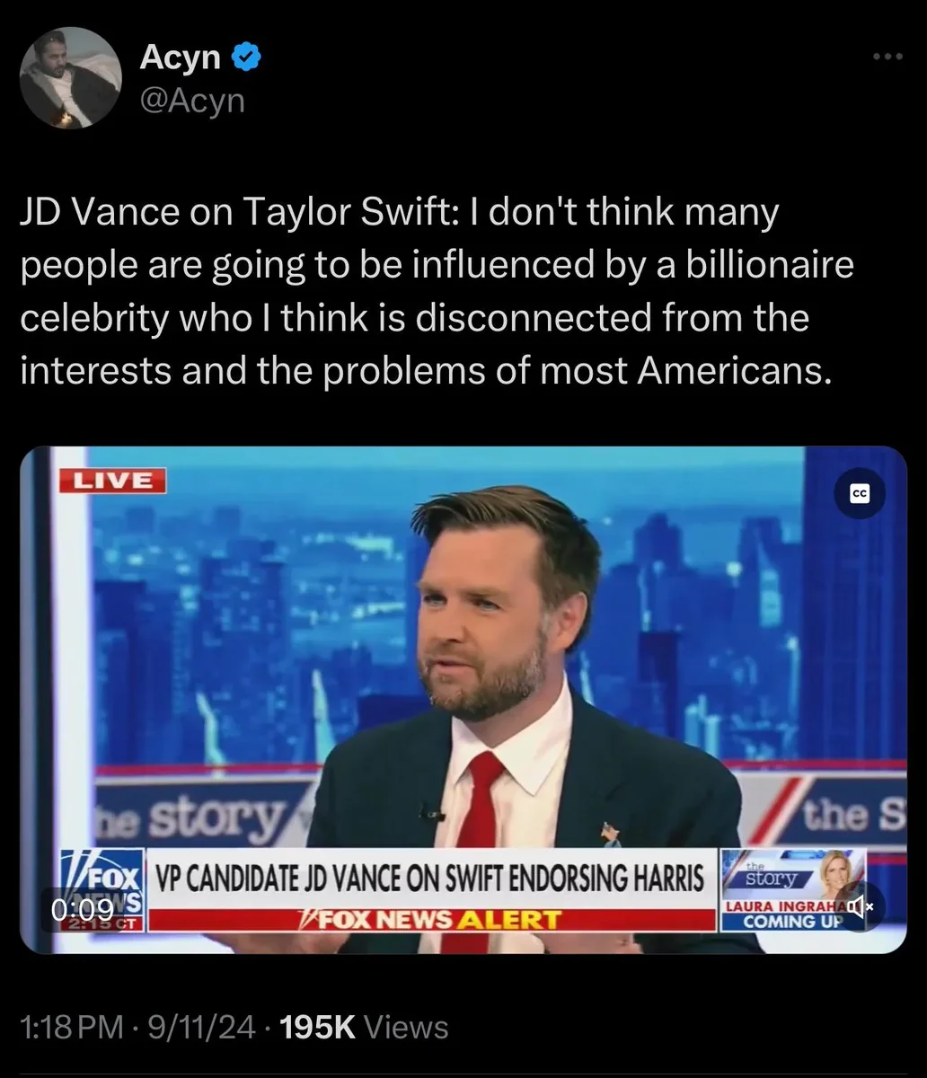 September 12, 20241 yr Author 3 hours ago, The_Omega said: This endorsement might surprise even Trump Seems like Pop Pop might be trying to tell Kommie something.