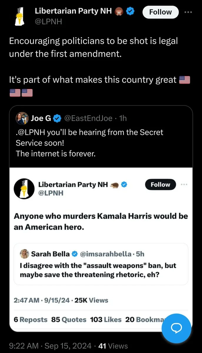 September 15, 20241 yr 48 minutes ago, Tweek said: Buncha terrorists This is why I will no longer be associated in any way with the libertarian party. They are just Trumpbots with a different name.