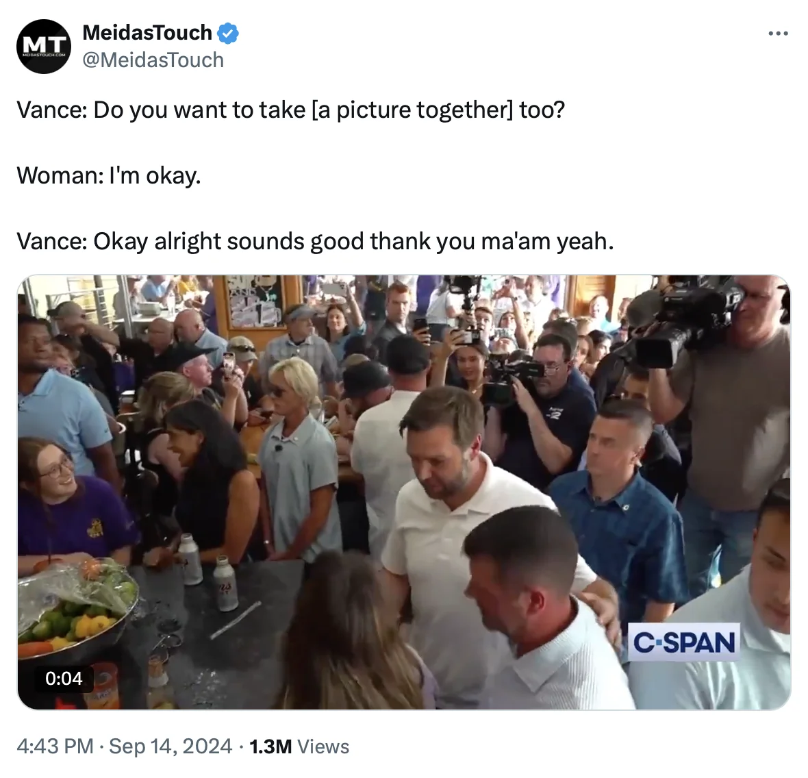 September 16, 20241 yr 14 minutes ago, WentzFan11 said: Vance isn’t worth the time. Not even worth a picture. https://x.com/MeidasTouch/status/1835102160411148564