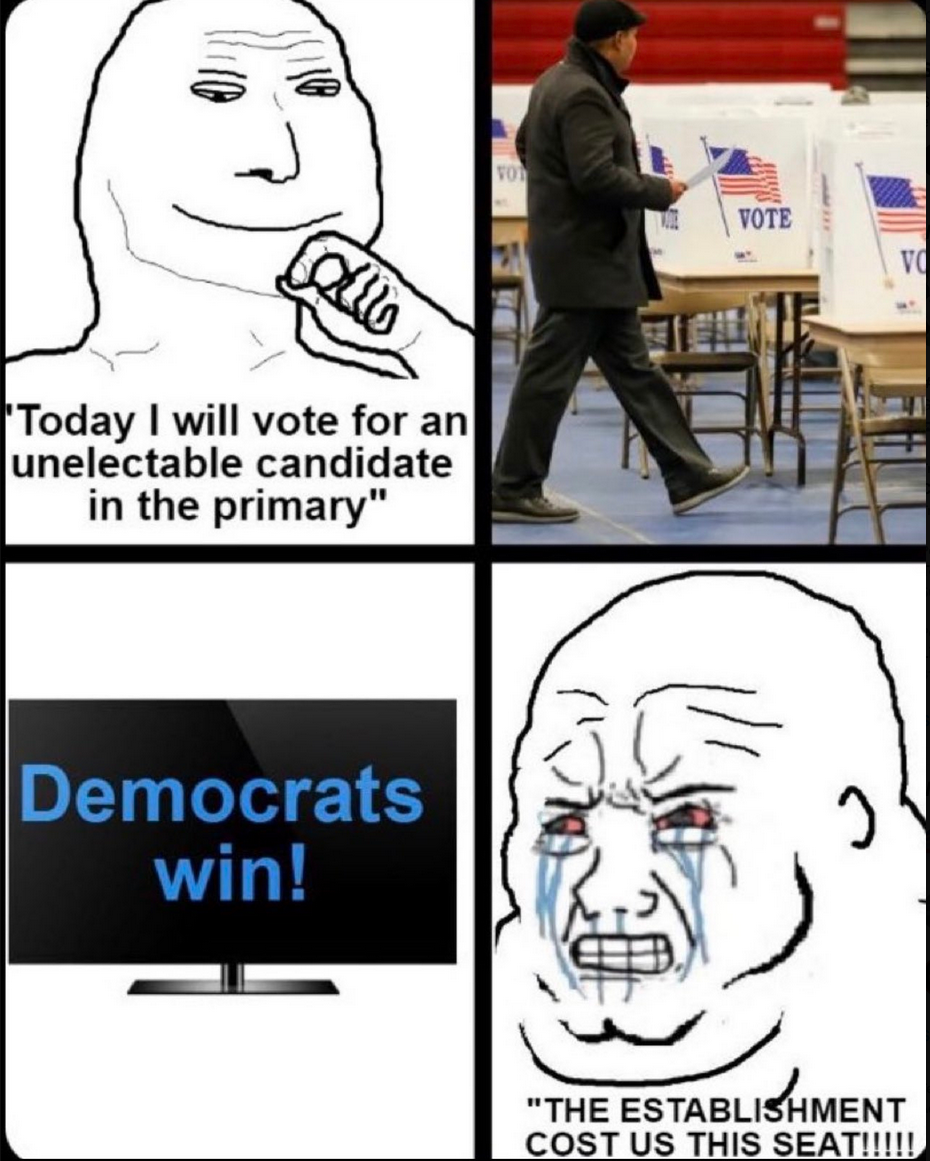 September 20, 20241 yr 3 minutes ago, Lloyd said: Hey, start standing up to the GOP about the freak show candidates they put out there. Get some normies who can promote normie (or even not so normal) ideas without conspiracies and dumb ish. And then you can ensure that she's a 1 term president. I can't really do anything about it. Trump wins in my area.