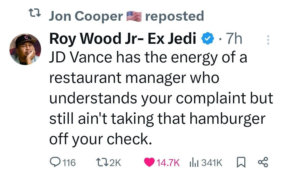 October 2, 20241 yr 3 minutes ago, lynched1 said: He obviously had much more time to sit on the couch and think about the debate.