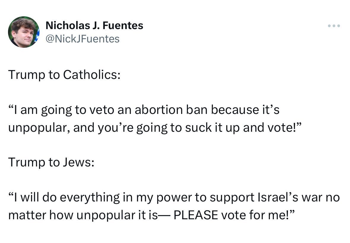 October 8, 20241 yr Just now, Procus said: Liberals here are aligned with Fuentes Donald Trump dined with white nationalist, Holocaust denier Nick Fuentes https://www.politico.com/news/2022/11/25/trump-white-nationalist-nick-fuentes-kanye-00070825Donald Trump dined with white nationalist, Holocaust denier Nick Fuentes