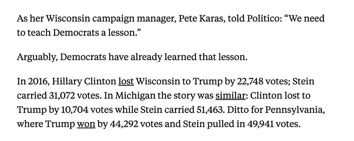 October 13, 20241 yr Is this something to be to be worried about? I learned about this from this SJW food stamp queen that is a Stein supporter that dems are running ads against her https://newrepublic.com/article/187038/jill-stein-green-party-grifter-hand-trump-white-house