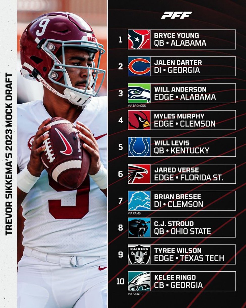 August 5, 20232 yr On 7/23/2023 at 6:51 AM, Procus said: Early PFF mock I’ve been so hyped about this draft class that I’ve watched the first round 8-9 times now and day 2 3-4 times from other teams’ perspective just to listen to them lament us getting the players we did. I don’t watch college football so I’m confident in saying I know more about this class than I ever have about any other. That being said… Who the F is Jared Verse? How Can a guy drop THAT much in a few months? Top 6 pick?