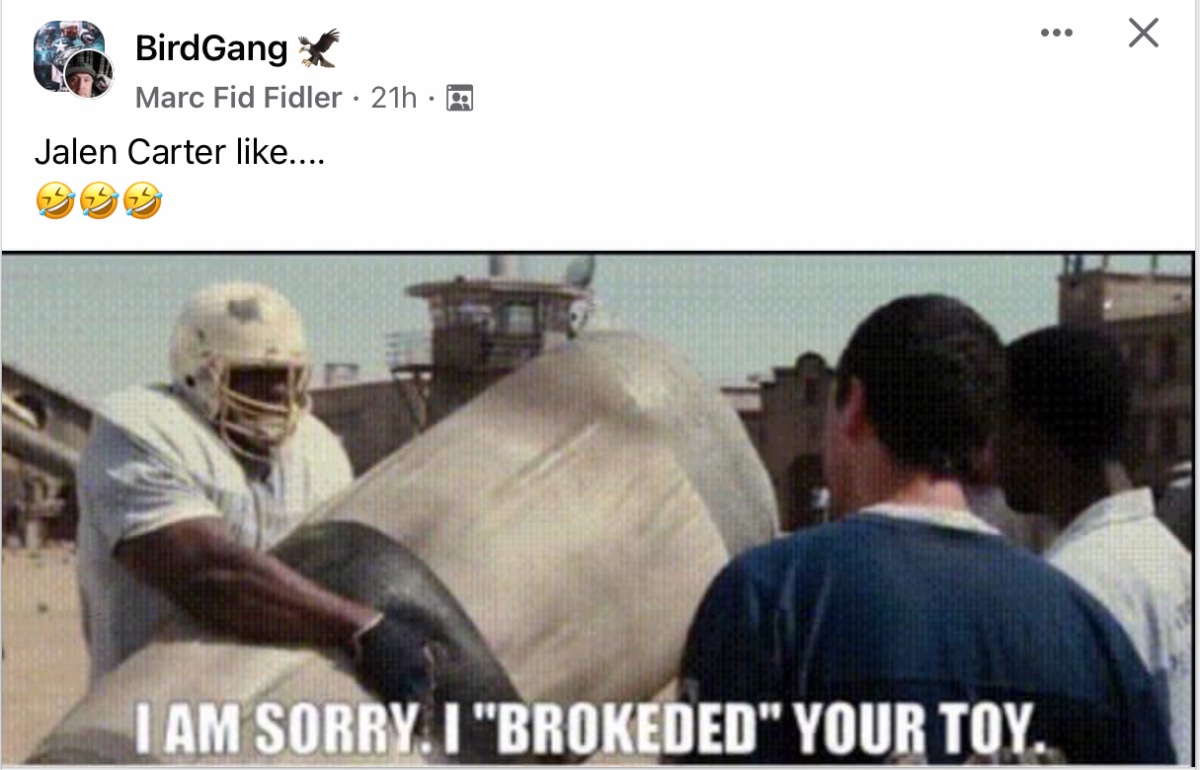 May 26, 20232 yr Joe Castro @PhillyPhillyTP "When speaking to people close to the #Eagles I was told Jalen Carter has "adapted quickly” and seems like he will "thrive in the Eagles structure”. I asked if Nolan and other teammates made him more comfortable and was told it was "quite the opposite”. https://twitter.com/PhillyPhillyTP/status/1661911439785836544?s=20