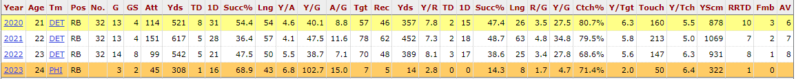 September 26, 20232 yr 14 minutes ago, VaBeach_Eagle said: It's WAY too early for a comparison, so naturally, I'll do a comparison... Jahmyr Gibbs (he's why they got rid of Swift, right?) D'Andre Swift (2023) They signed David Montgomery too