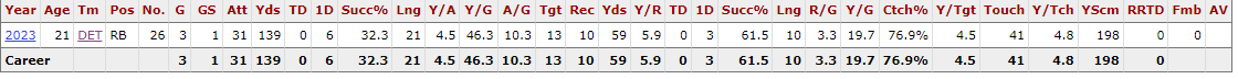 September 26, 20232 yr It's WAY too early for a comparison, so naturally, I'll do a comparison... Jahmyr Gibbs (he's why they got rid of Swift, right?) D'Andre Swift (2023)