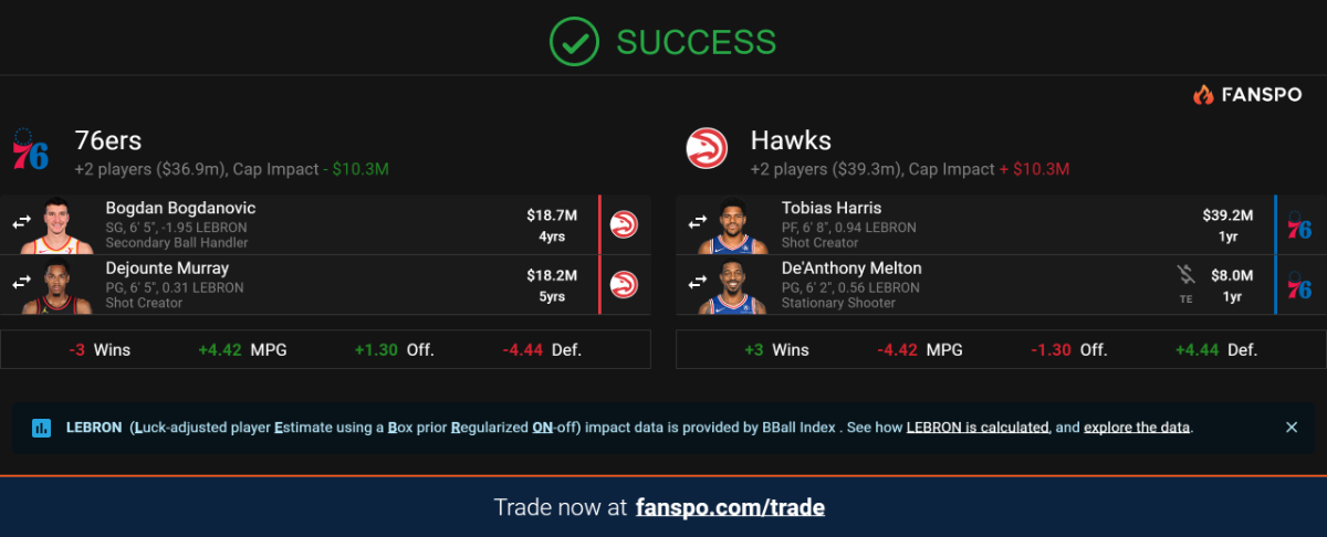 January 6, 20242 yr It seems tough to match salary for Murray considering he has a pretty low salary this year, but then his new deal kicks in. This works for salary, but is obviously very lopsided for the 6ers. If Morey is good he will print this post and fax it to ATL as an official offer.