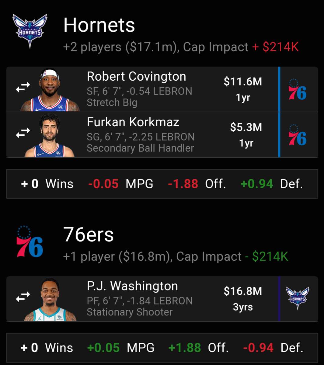 January 24, 20241 yr 53 minutes ago, DaEagles4Life said: Add a 1st I kinda like Obi Toppin as an option. Here is a comparison of him vs PJ. Some interesting graphics here. Very similar players. Seems like Washington switches on to centers defensively more than Toppin. Toppin sticks to SF and PF more. Seems to be shooting the 3 way better than Washington this season. I feel like Washington is more established, well known, and will cost more. https://craftednba.com/players/comparison/obi-toppin-vs-p.j.-washington