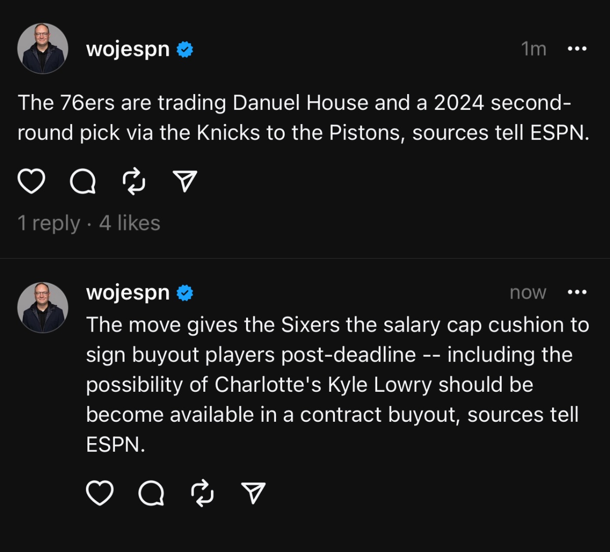 February 8, 20241 yr Author Just now, mr_hunt said: d-house & a 2nd to detroit...don't know what for yet. puts sixers below 1st apron...lets them sign buyout guys...lowry?
