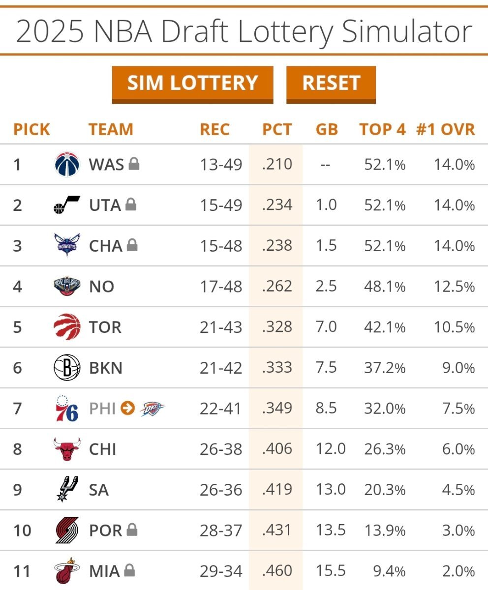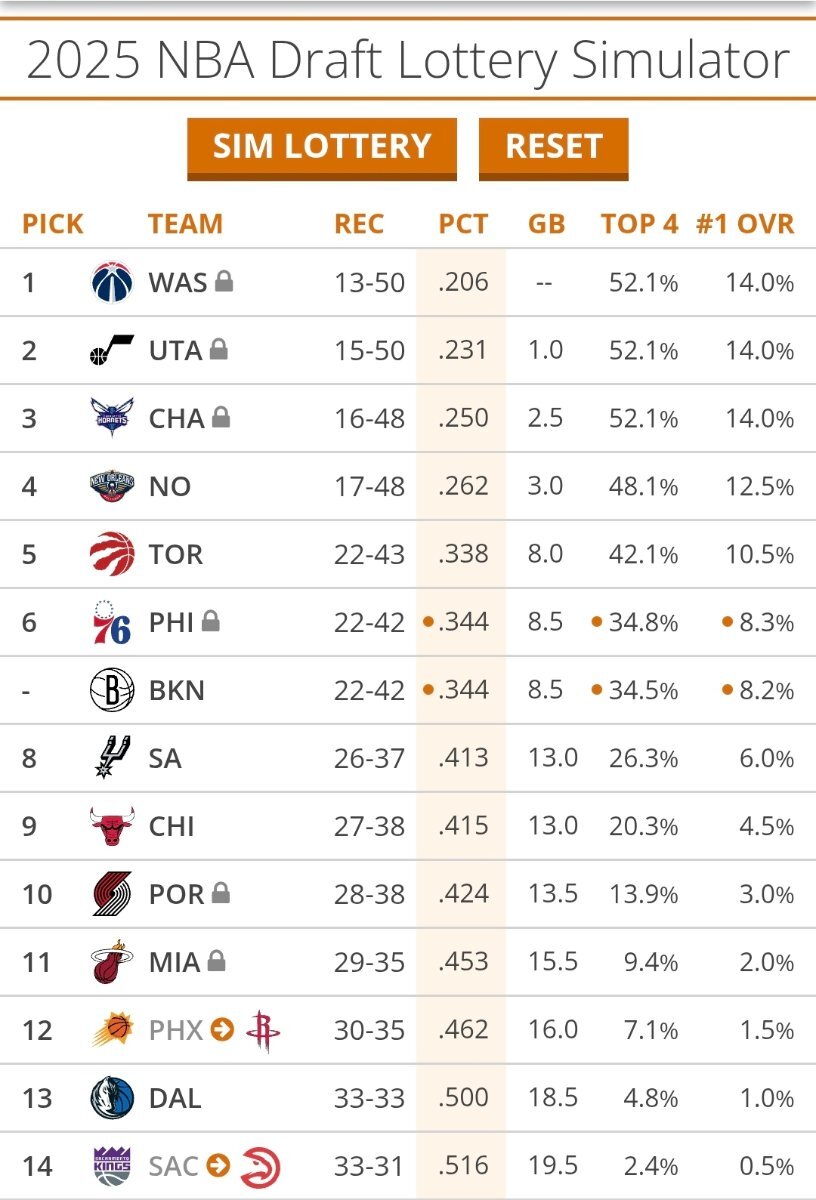 March 7, 2025Mar 7 Rooting for Jazz or Raptors tonight? Much further behind Jazz, and they have a hard enough schedule that I don’t think Sixers will pass them unless they finish out 0-20, but man would be sweet to catch them. Raptors have a ton of winnable games down the stretch- their next 4 are wizards, wizards, sixers, jazz and then they have 6 more against wizards, hornets, sixers, & nets after that plus a couple against the Wembyless Spurs. Honestly looking at their schedule, the Raptors could still make a run at the play-in.